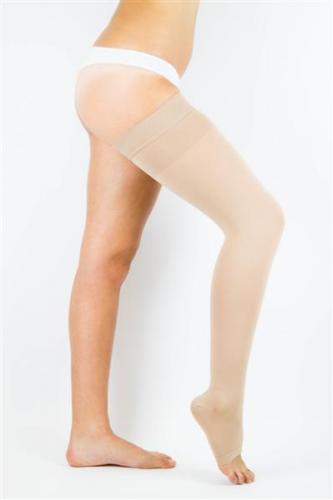 Calza autoreggente alla coscia, con banda di silicone applicata, p/aperta (A-G) con compressione graduata media, classe di compressione kl.2, 23-32 mmHg.