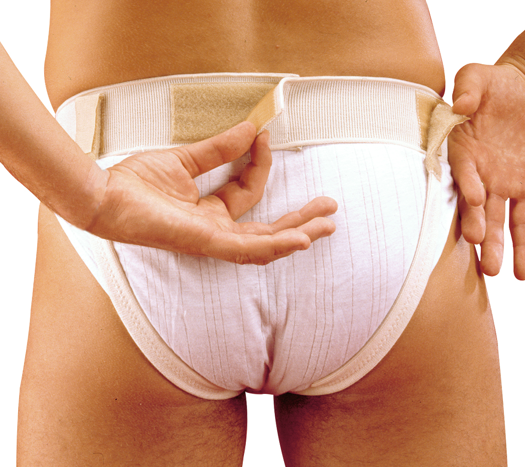 Cinto per ernia universale con alloggiamento per pelotte. Le regolazioni dell’elastico in vita e dei sottocoscia sono in velcro, in modo da poter variare le lunghezze a seconda delle esigenze.