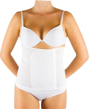 Fascia post-operatoria Aerflex con chiusura anteriore a velcro, altezza 27 cm. Il tessuto areato garantisce un’elevata traspirazione, mentre il cotone che ricopre la banda assicura un contatto igienico e assorbente con eventuali ferite.