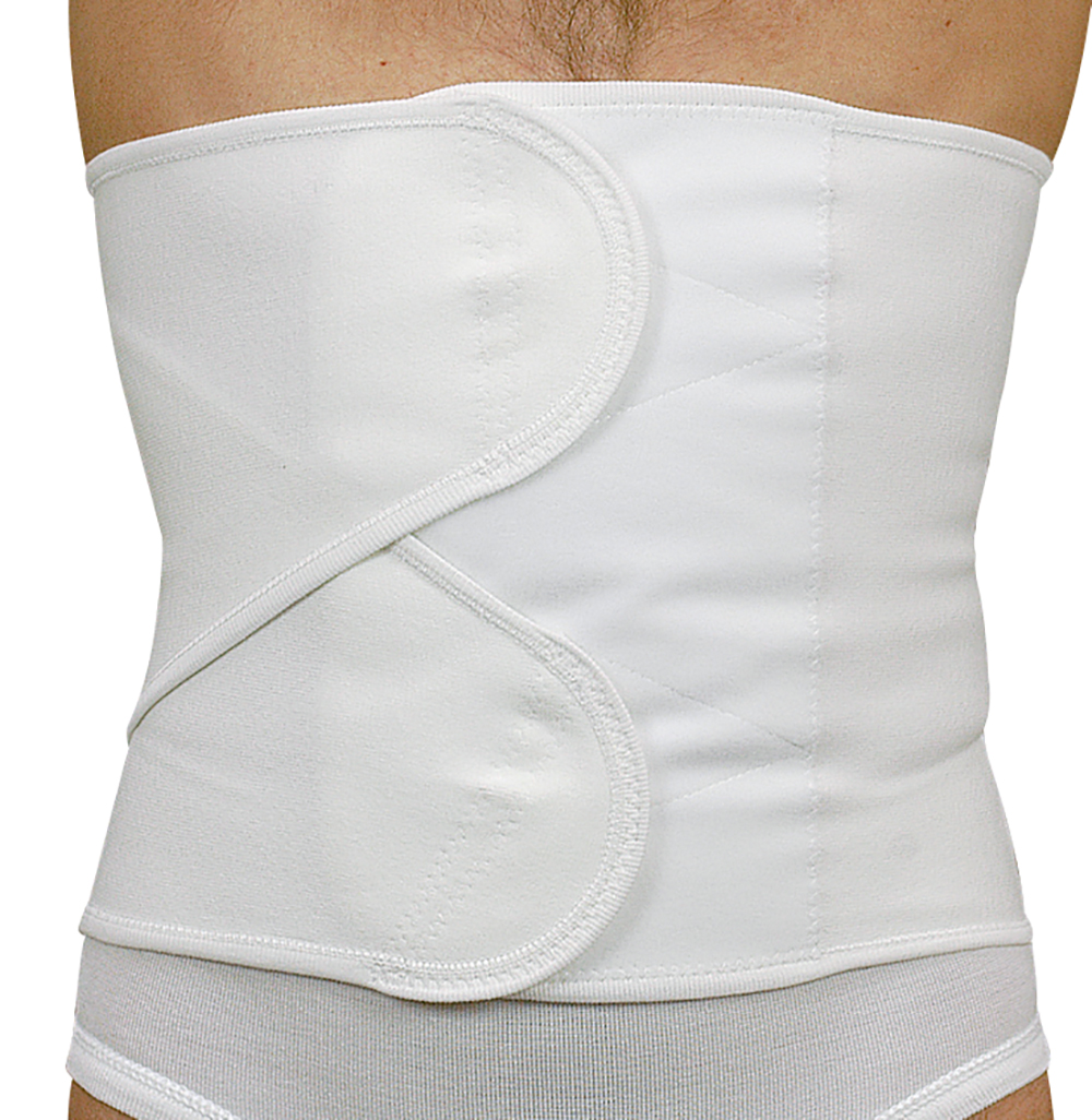 Fascia contenitiva post-operatoria Reflex per utilizzo in campo medico sanitario. Altezza 28 cm, con speciale chiusura a doppio velcro anteriore.