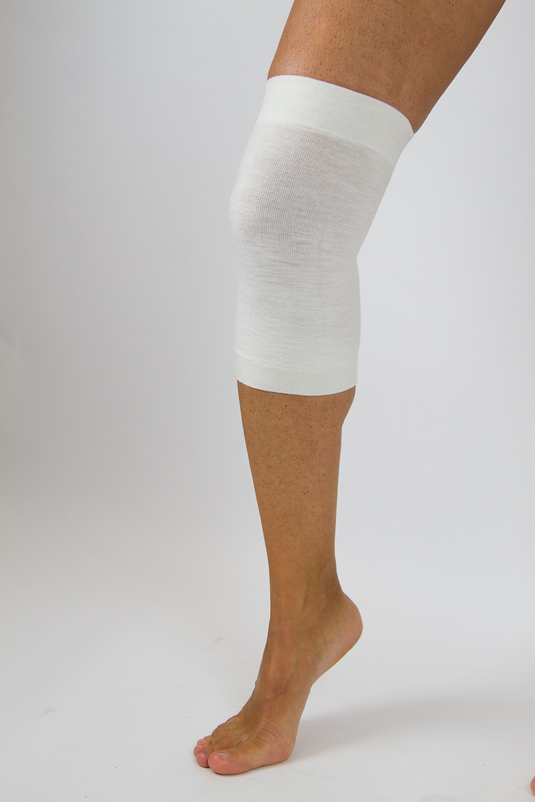Ginocchiera in angora, con effetto termico per la protezione dal freddo e conformazione tubolare con compressione elastica, leggermente poliestensiva.