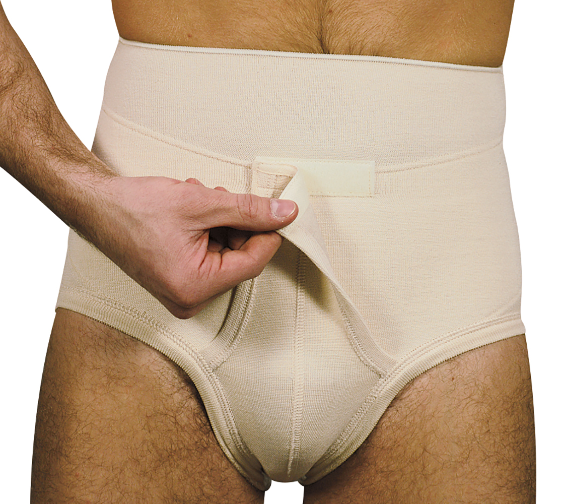 Slip erniario maschile monoestensivo con apertura anteriore velcro