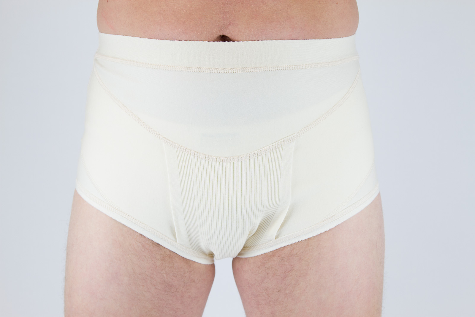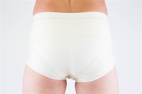 Slip erniario per uomo con pelotte, per prevenire eventuali ernie o forme di varicocele. Il prodotto è poliestensivo e permette di applicare una compressione di livello medio.