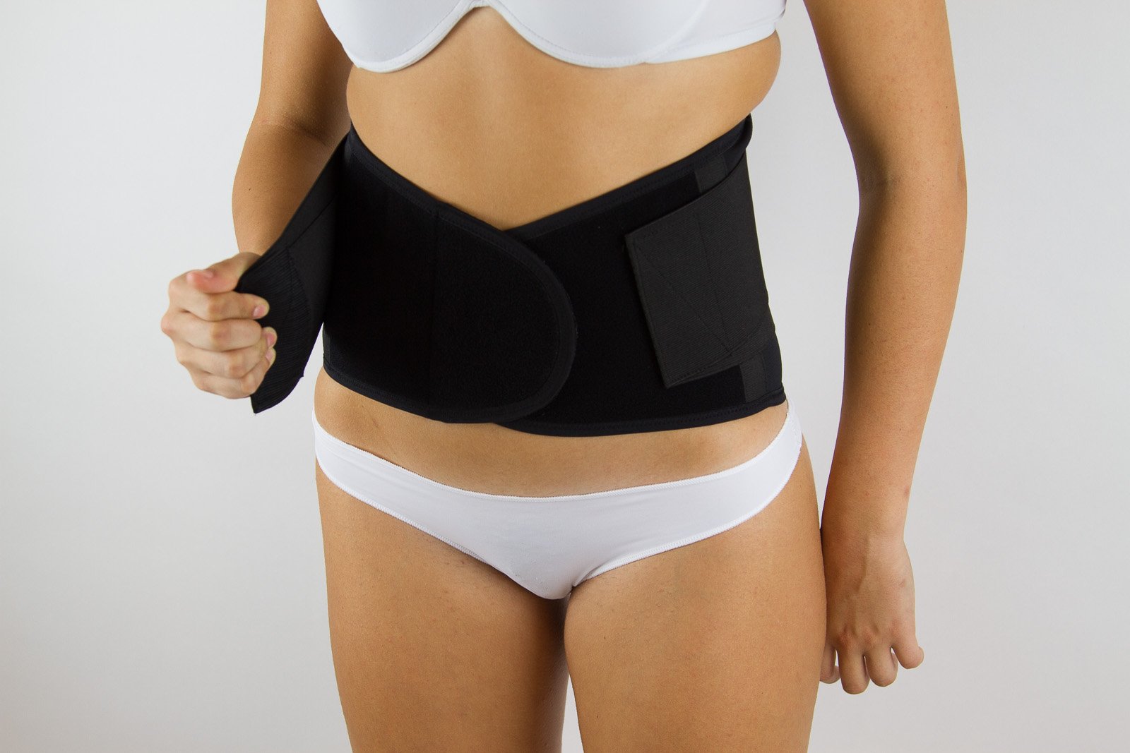 Corsetto ortopedico Sportflex di 26 cm di altezza, con doppia chiusura anteriore a velcro e quattro stecche posteriori.